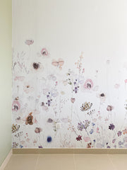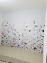 A little field of delicate watercolour flowers in soft hues floating in the breeze.
