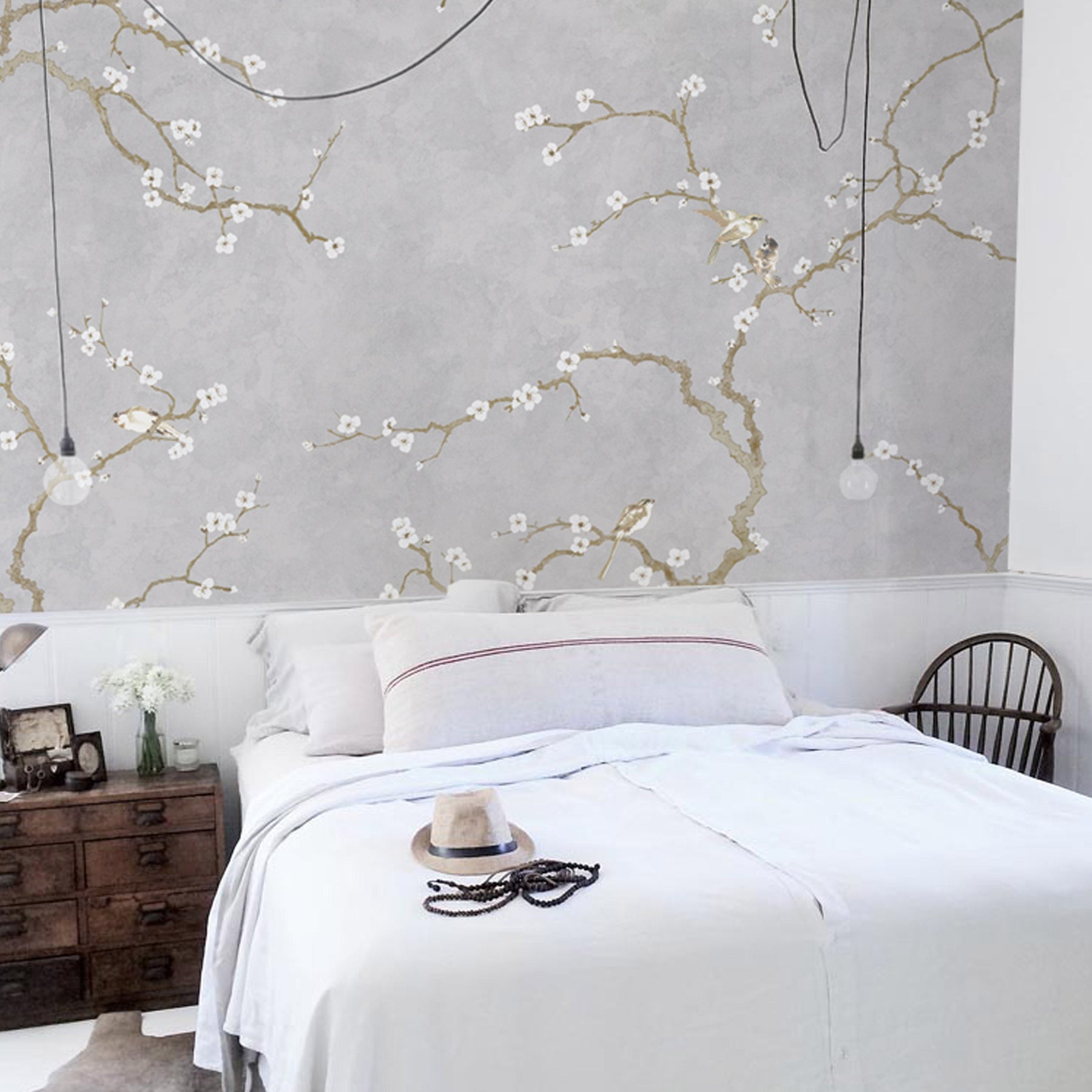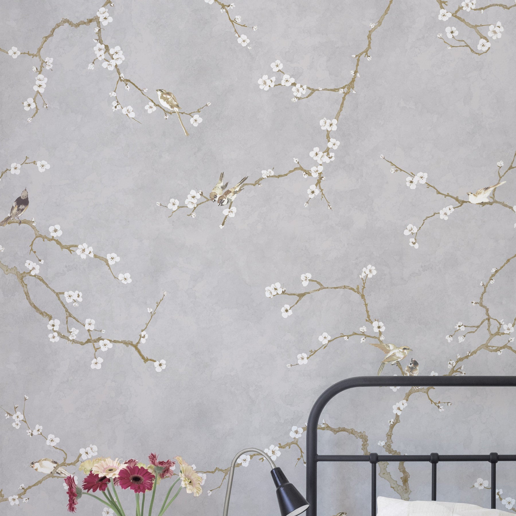 Japanese Birds of Spring - Pearl Grey
