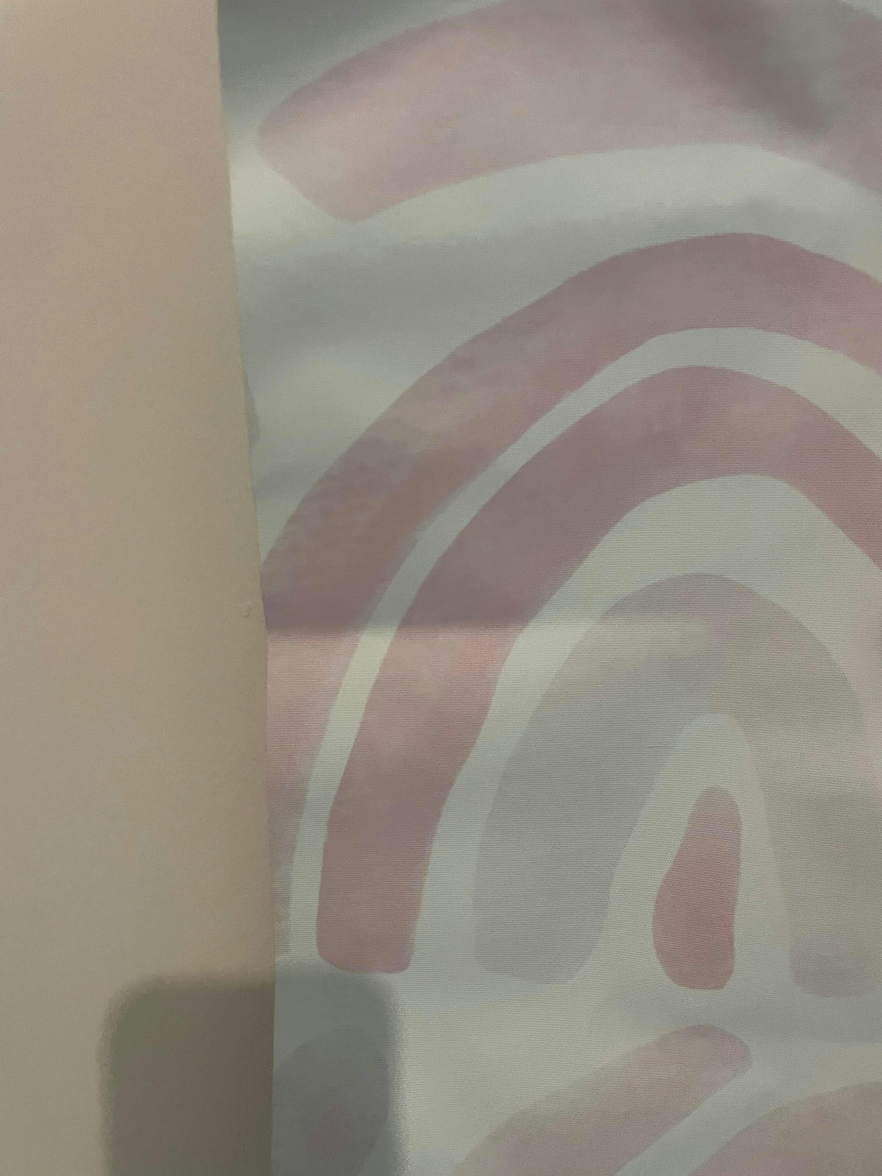 A pastel pattern of hand painted watercolour rainbows in blush pink.