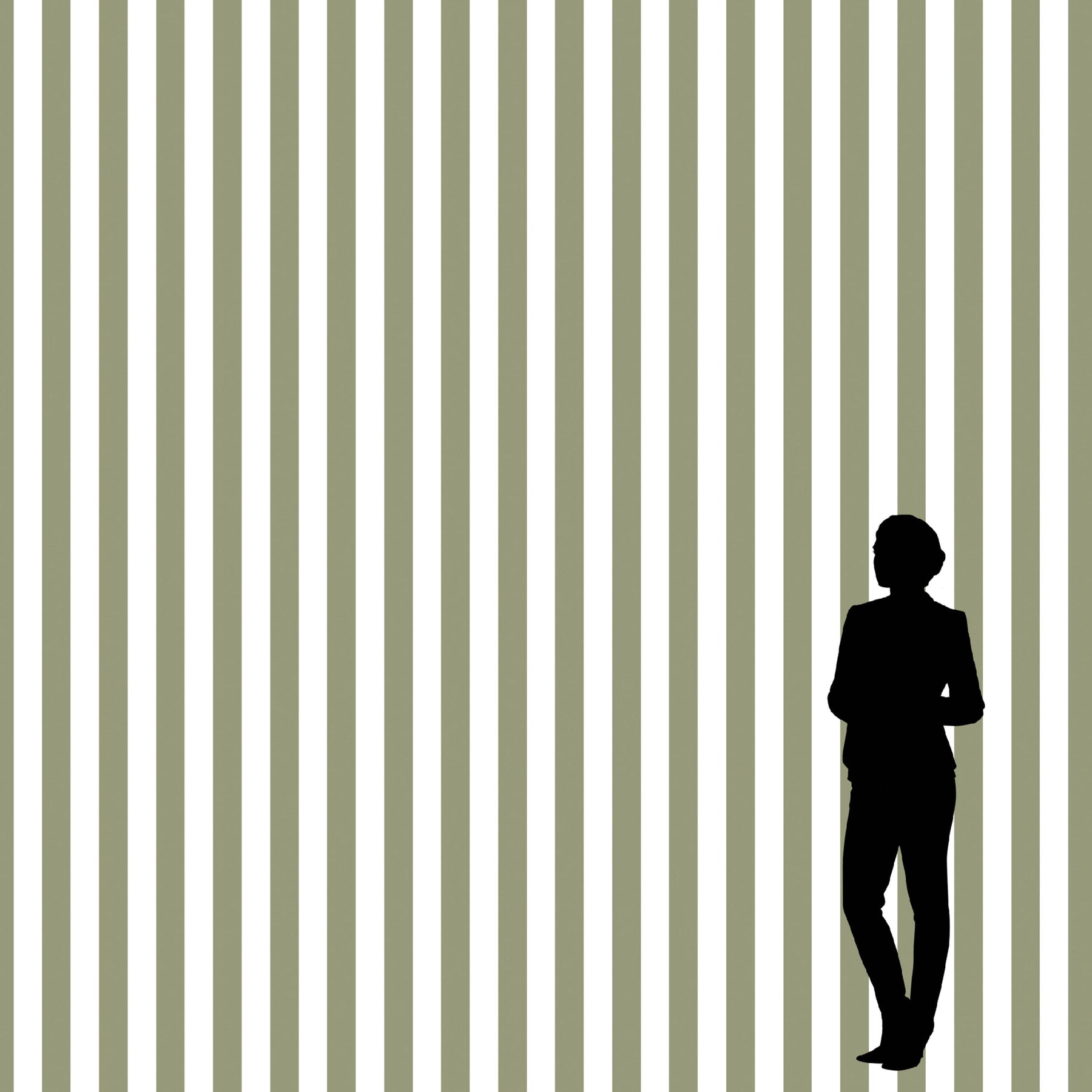 A classic favourite from the Victorian era, the simple stripe makes a bold and timeless statement. This Alcott Stripe is a solid olive colour and is approximately 9cm wide on a white background.