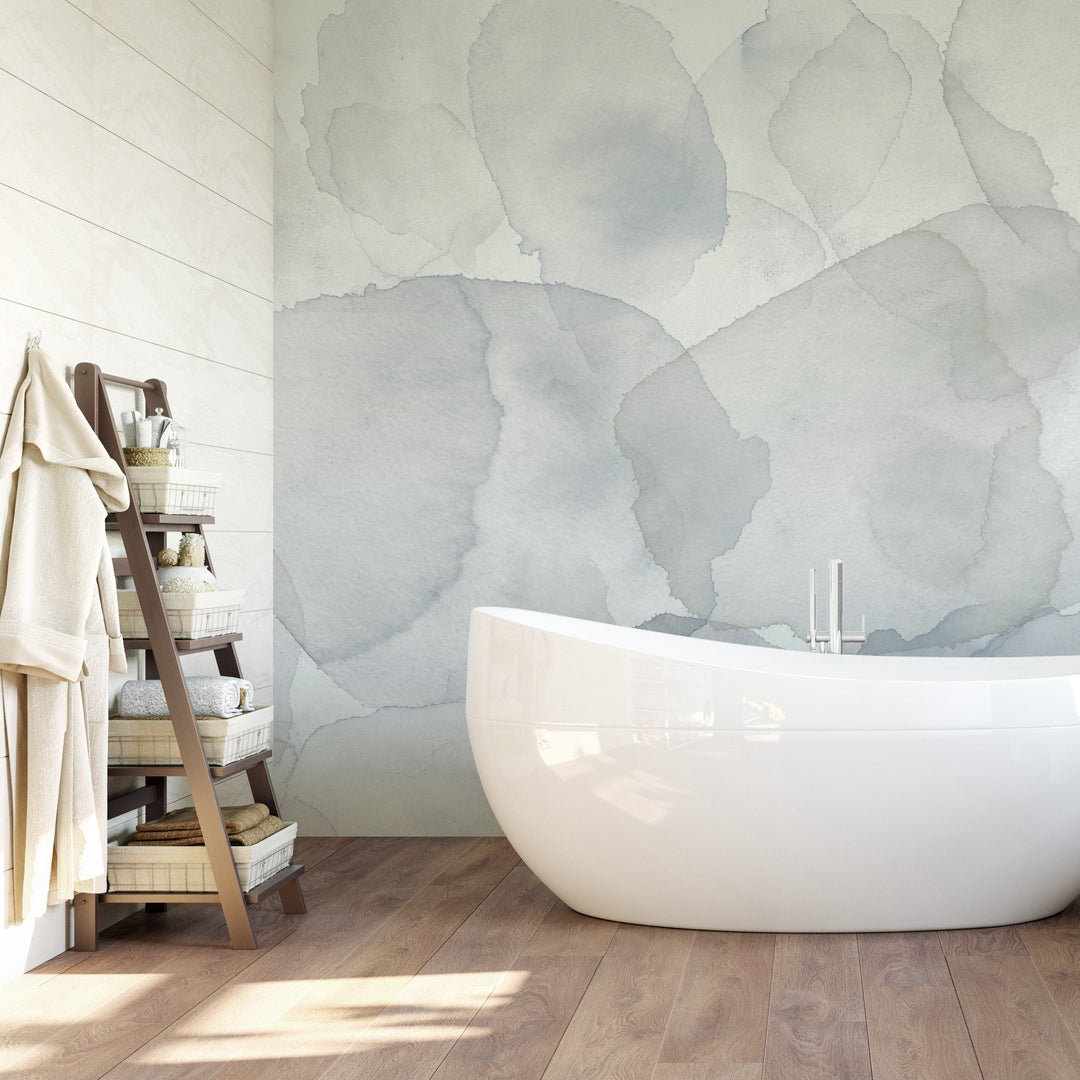 Consider the scale of your space to help guide your decision. Larger rooms may accommodate bolder patterns and murals but be sure to consider the colours to ensure you do not overwhelm the senses e.g. consider calming colours like blush pinks, sage green or a grey-blue aesthetic that works with your interior design style. Smaller spaces might benefit from a fun pattern, evoking a sense of tradition and continuity but a simple, elegant mural can also work in a small space.